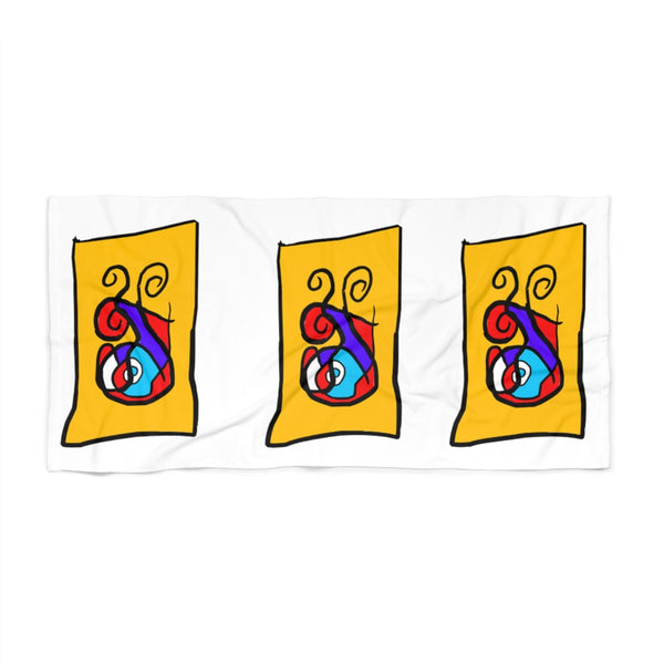 Show up on the beach with a vibrant and super soft beach towel. One-sided print, polyester facing with cotton loop backing for extra lush absorbency.  With original artwork by Naama Zahavi-Ely.  If you would like such a towel with other artwork by me please let me know at nxzaha@wm.edu -- thank you!
