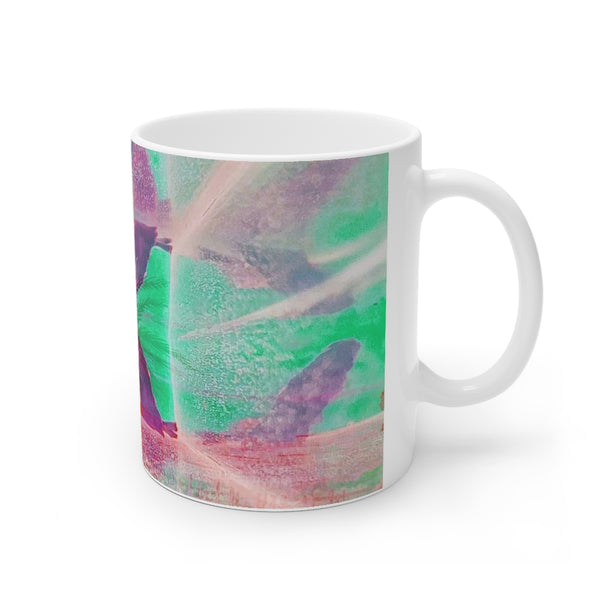 Cosi backgrounds 9, Opera in Williamsburg Virginia, White Ceramic Mug, 11oz and 15oz, artwork by Roxane Revon